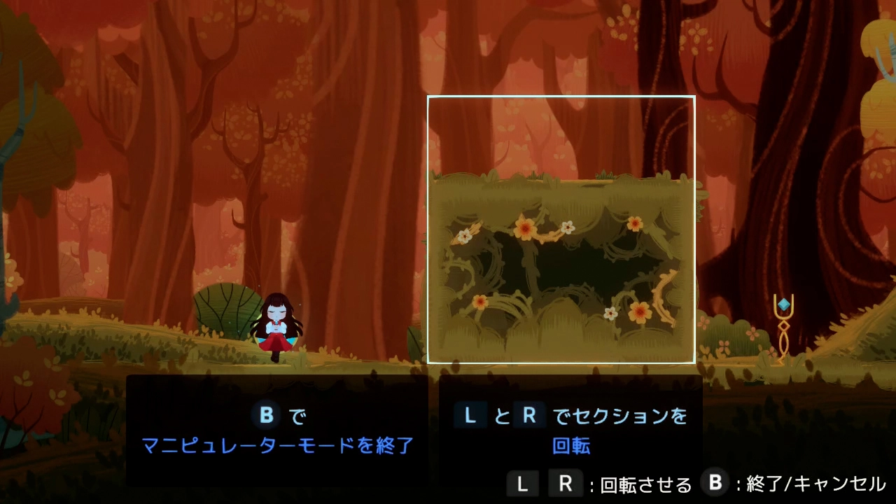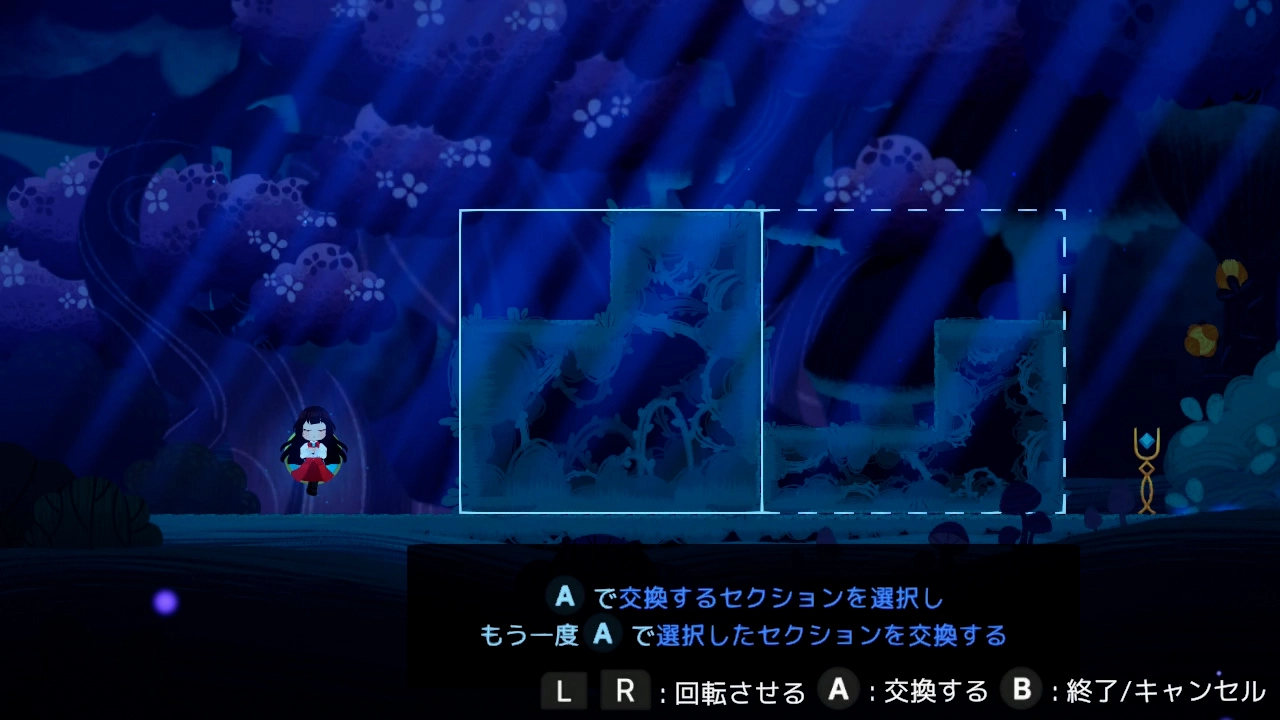パズルを解いて世界を進むために、周囲の環境を入れ替え、回転させ、移動させよう